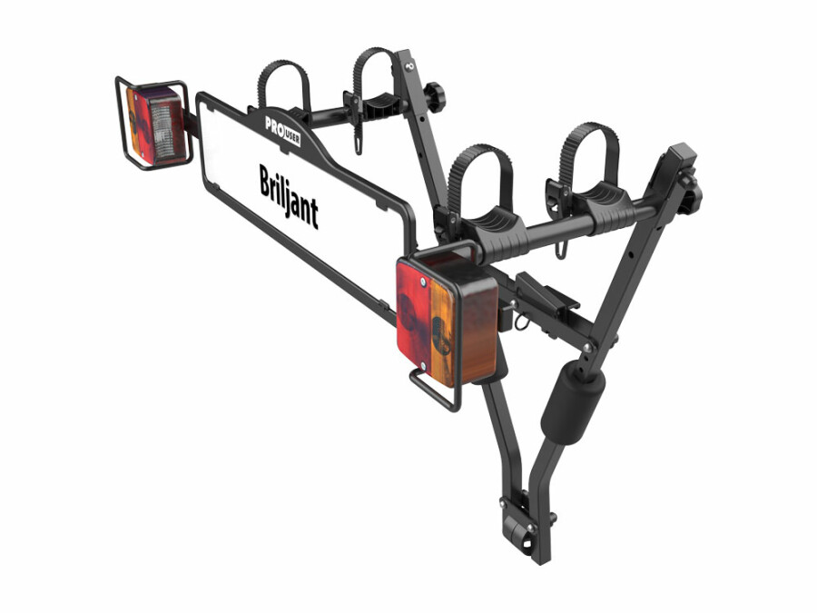 The Brilliant is a simple, lightweight bike carrier for quick and frequent transport of 2 bikes. With its easy mounting on the tow bar, it can be mounted without tools. The bikes are securely fastened by means of several foam accessories.