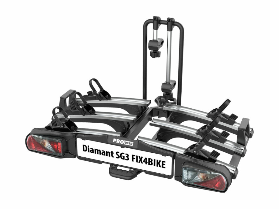 The SG3 Fix4Bike can now be attached to the Fix4Bike towbar, without any problems. Fix4Bike are towbars with 2 additional bolts on the side. On a Fix4Bike towbar regular bike carriers, trailers and caravans also fit. In contrast, a Fix4Bike bike carrier does not fit on a standard towbar. A big plus of a bike carrier with a Fix4Bike coupling is it always sits firmly and straight on the tow ball. The specifications of SG3 Fix4Bike are unchanged and the same as those of the SG3.